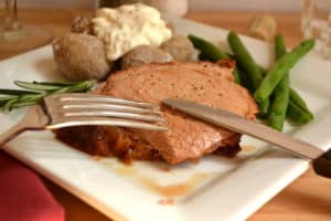 Quick Pork Roast cooked at high temperature & Salt Crusted Boiled Baby Potatoes | www.craftycookingmama.com