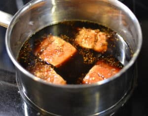 Moist & Flavorful Alaska Salmon Poached in Soy Sauce, Garlic & Ginger.  Takes less than 15 minutes to make | www.craftycookingmama.com