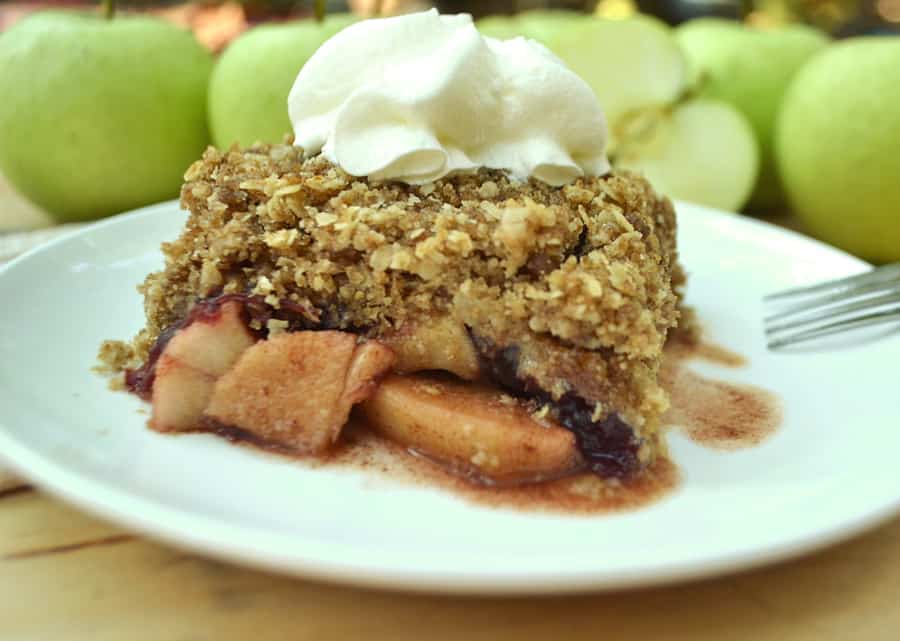 Welcome fall with Apple Cranberry Crisp Crumble | Cinnamon baked apples, a sweet, tart layer of cranberry sauce & a candied, crumbly, buttery oat topping | craftycookingmama.com