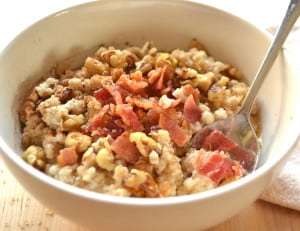 Bacon, Maple, Brown Sugar and Walnut Oats Oatmeal | #BringYourBestBowl | www.craftycookingmama.com