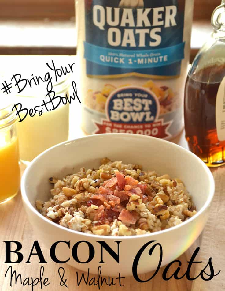 Bacon, Maple, Brown Sugar and Walnut Oats Oatmeal | #BringYourBestBowl | www.craftycookingmama.com