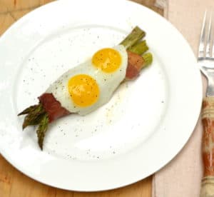 Bacon Wrapped Asparagus Bundles Topped with Sunnyside-up Quail Eggs | www.craftycookingmama.comJune 29, 2016 by Amanda Leave a CommentBacon Wrapped Asparagus Bundles Topped with Sunnyside-up Quail Eggs | www.craftycookingmama.com