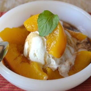 Canned Peaches Dessert. Canned peaches transform into a delicious, elegant dessert with balsamic vinegar & vanilla ice cream. Have it on your table in under 10 minutes!