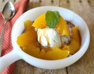 Canned Peaches Made Delicious | Save the Heavy Syrup & Reduce with Balsamic & Served Over Vanilla Ice Cream | www.craftycookingmama.com