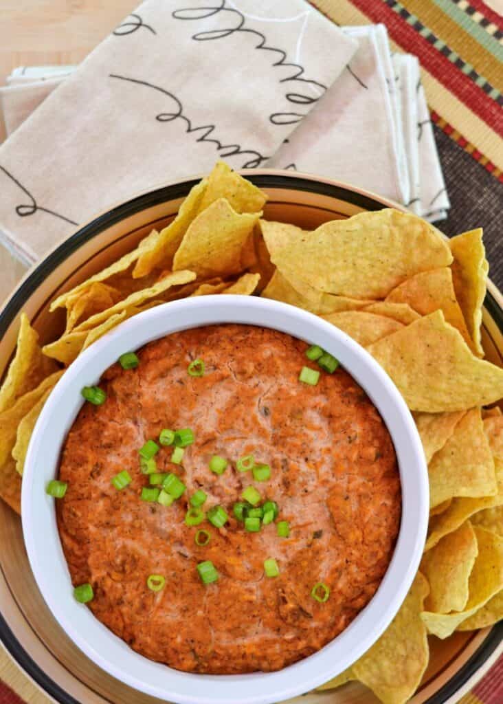 This Cheesy Refried Bean Dip is for all the refried bean lovers. Warm, cheesy & super thick. Made with beans, salsa, shredded cheese, cream cheese & sour cream. Serve with tortilla chips. Refried Beans – Some Of Us Love Them First thing I’ll say – you have to be a refried bean lover to enjoy…