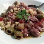 This Spanish Seafood Salad is loaded with shrimp, crab, octopus, fresh veggies & olives. Seafood fans will love it’s fresh, bright, bold flavor! Shrimp. Crab (yes,even the imitation stuff). Octopus. These are a few of my favorite things. I love seafood salad, but not so much when it’s drowned in mayo. I skip the mayo…