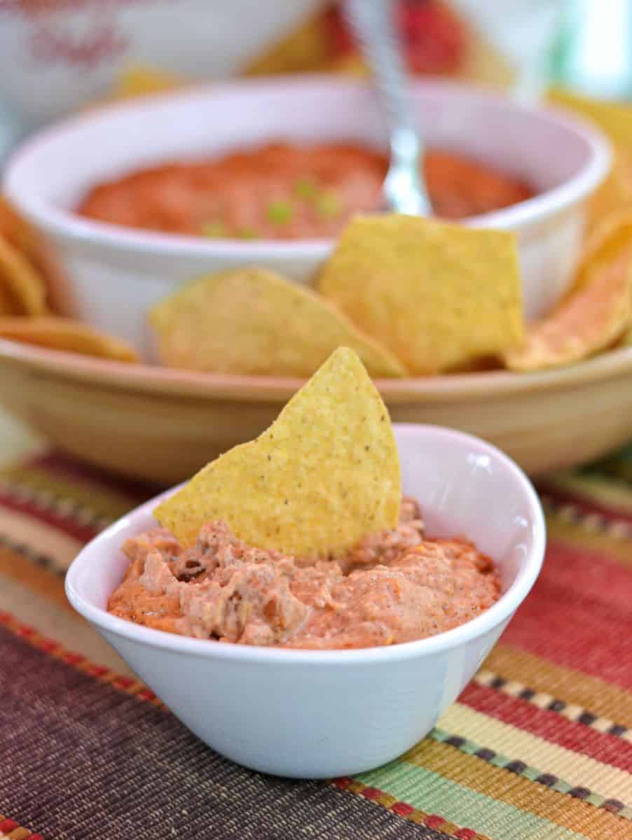 First thing I’ll say – you have to be a refried bean lover to enjoy this dip.
