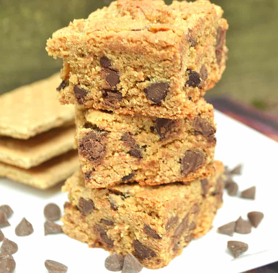 A chewy, different & delicious chocolate chip cookie bar / blondie made with graham cracker crumbs | Quick to make with only 6 ingredients | Kid friendly baking | craftycookingmama.com