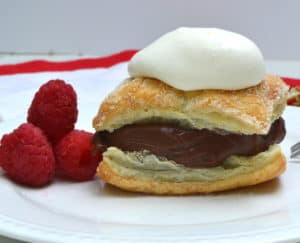 Rich chocolate ganache layered between flaky Puff Pastry and topped with homemade whipped cream. Absolute dessert perfection | www.craftycookingmama.com