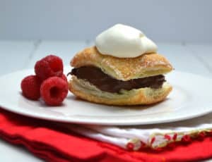 Rich chocolate ganache layered between flaky Puff Pastry and topped with homemade whipped cream. Absolute dessert perfection | www.craftycookingmama.com