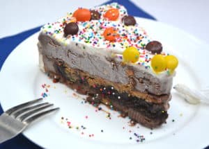 Chocolate Peanut Butter Ice Cream Cake | www.craftycookingmama.comMay 27, 2016 by Amanda Leave a CommentChocolate Peanut Butter Ice Cream Cake | www.craftycookingmama.com