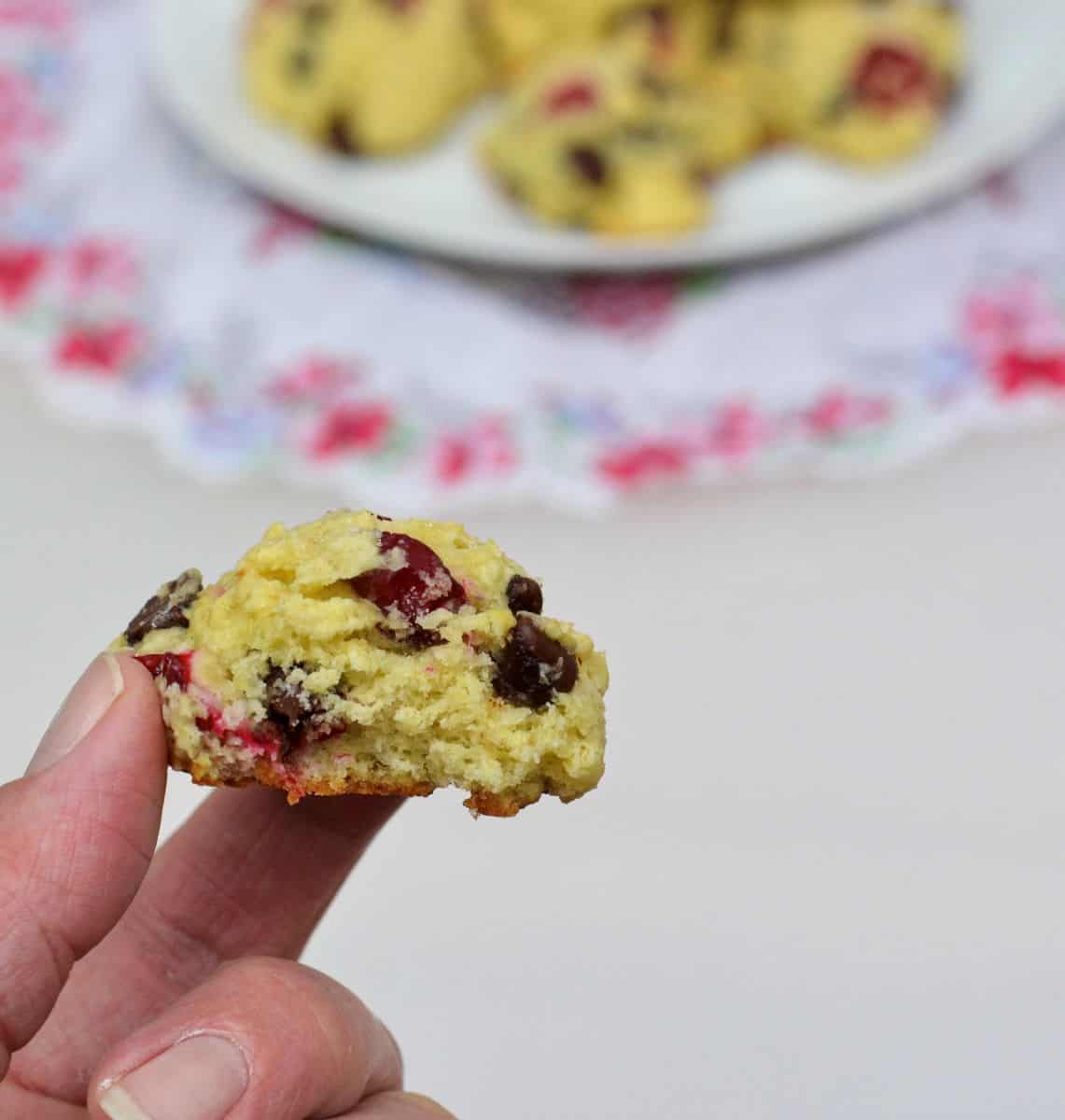 Bite sized Cranberry Chocolate Scones. This easy recipe makes a lightly sweetened, tender perfect scone.