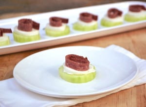 Cream Cheese & Lebanon Bologna Cucumber Hors d’oeuvre | A simple PA Dutch favorite fancied up | Quick and delicious snack or appetizer | www.craftycookingmama.com