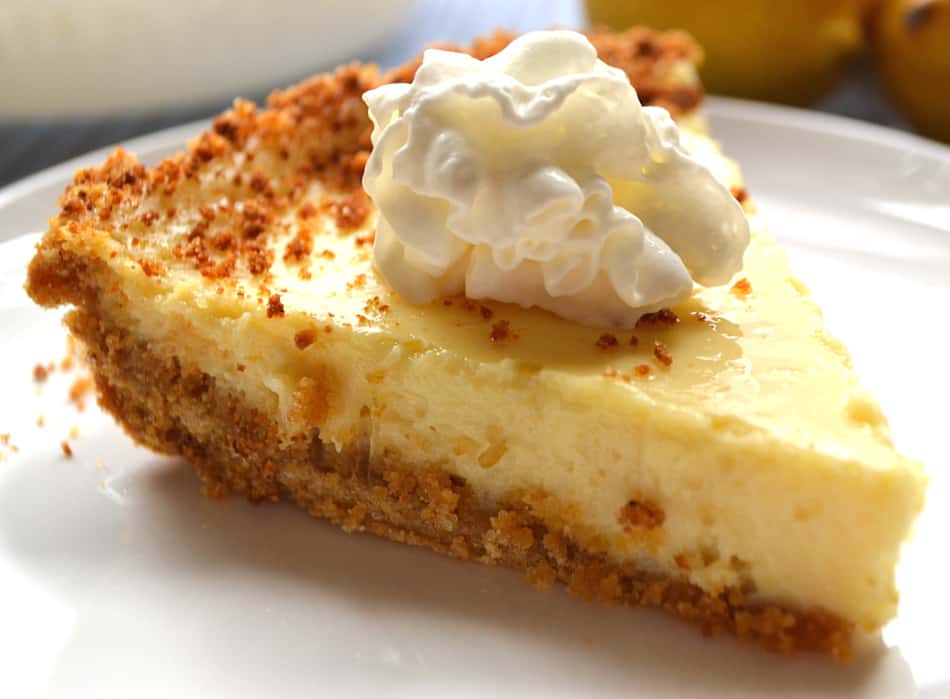 This Creamy Lemon Pie is easy to mix up and bake. It’s served best plain or with a dollop of whipped cream.