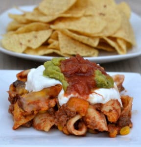 Fiesta Pasta Bake | Dinner Comes together quickly & deliciously with this budget friendly, filling meal | www.craftycookingmama.com