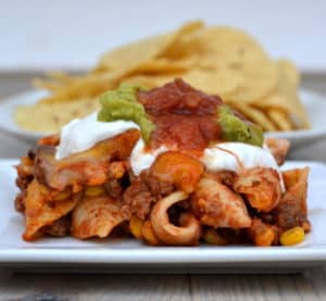 Fiesta Pasta Bake | Dinner Comes together quickly & deliciously with this budget friendly, filling meal | www.craftycookingmama.com