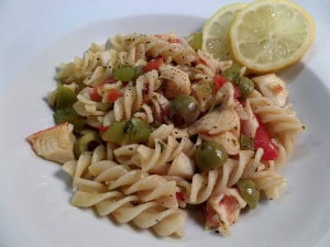 Veggie Pasta and Olive Oil with Imitation Crabmeat – Easy Seafood Veggie Pasta – craftycookingmama.com