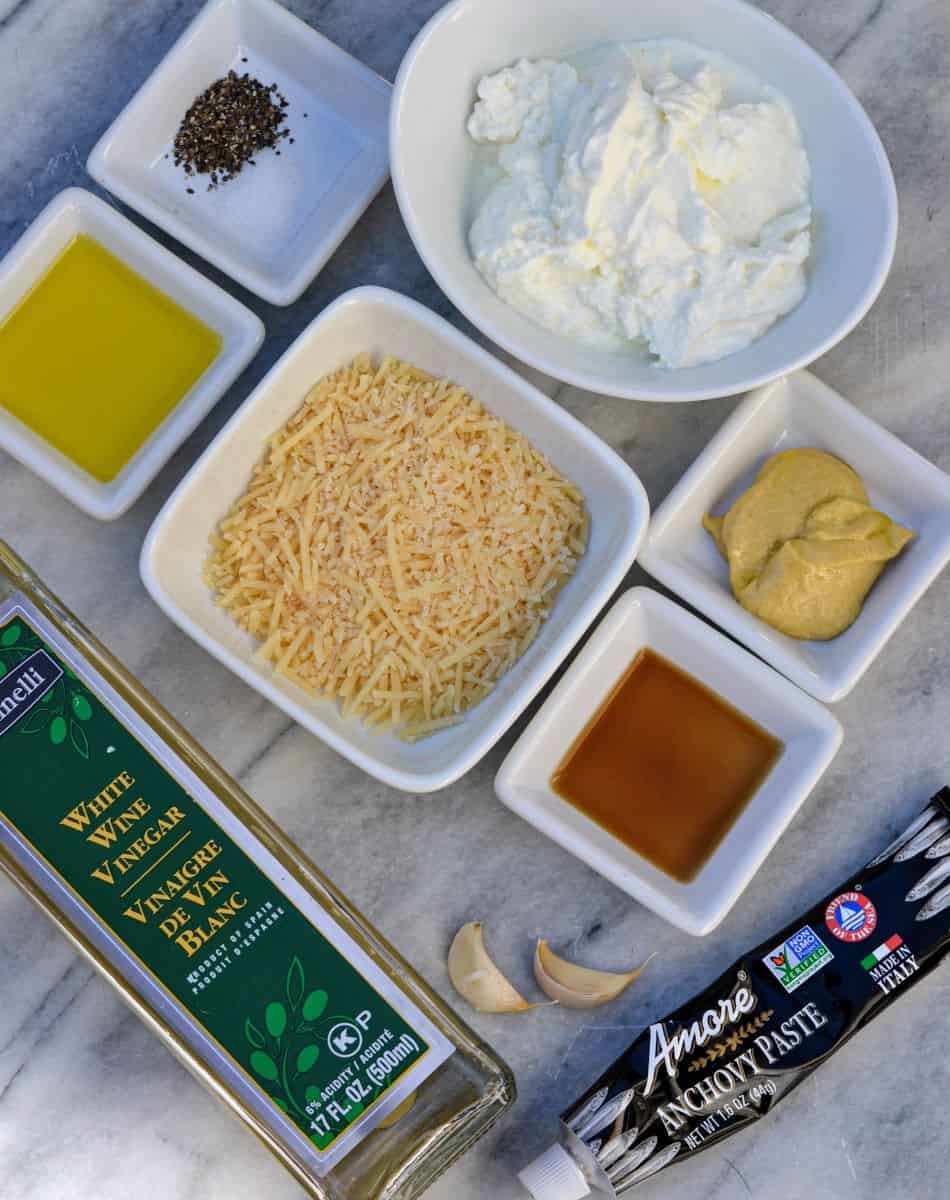 Ingredients & Prep for Greek Yogurt Caesar Dressing