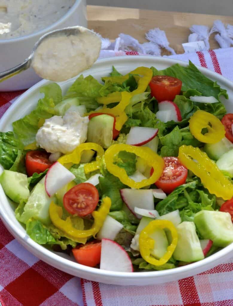 • This dressing is thick! I use it as a dressing & veggie dip. If you’d like it a little thinner, add 1-2 tablespoons of water or milk to the dressing.