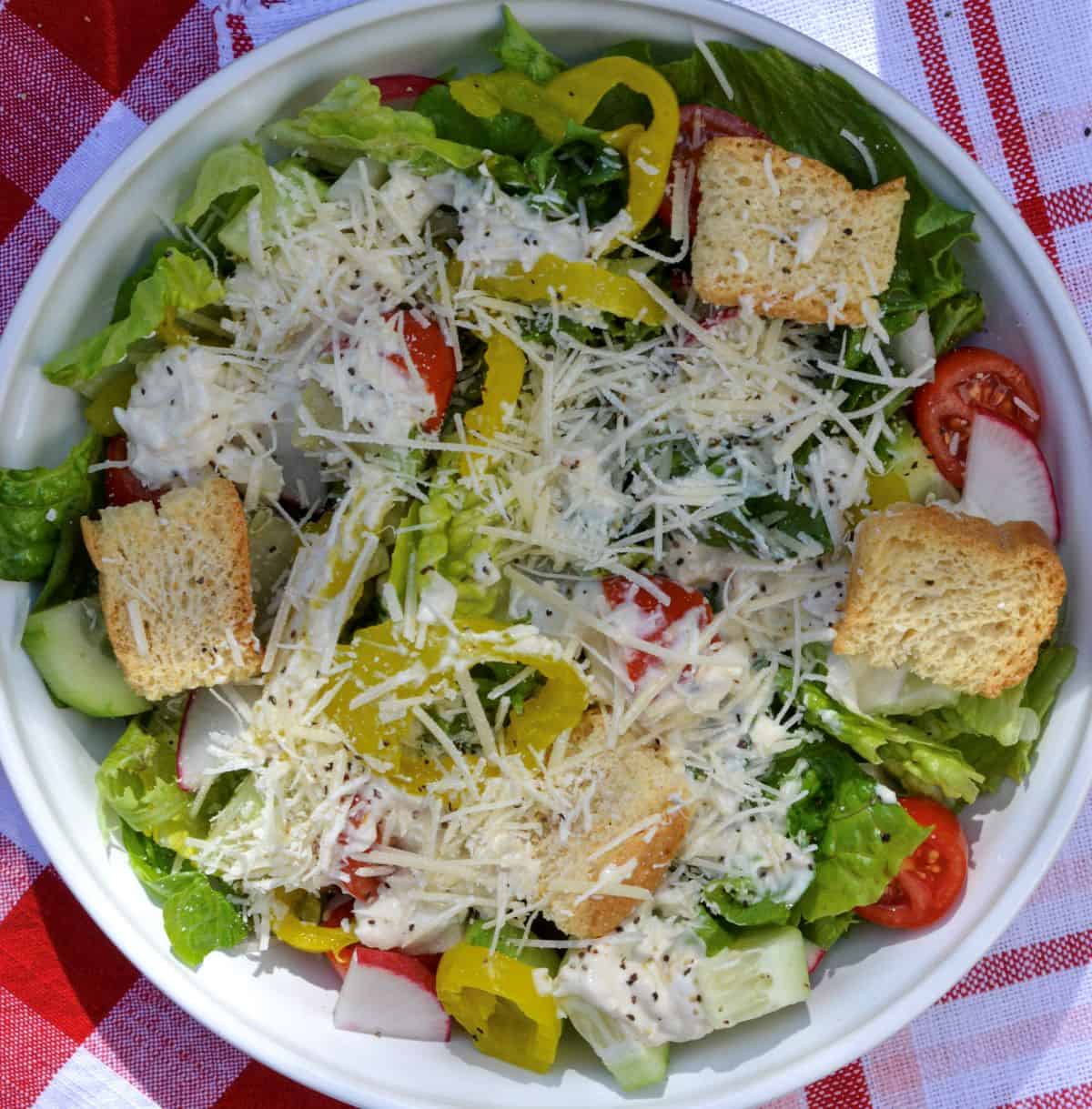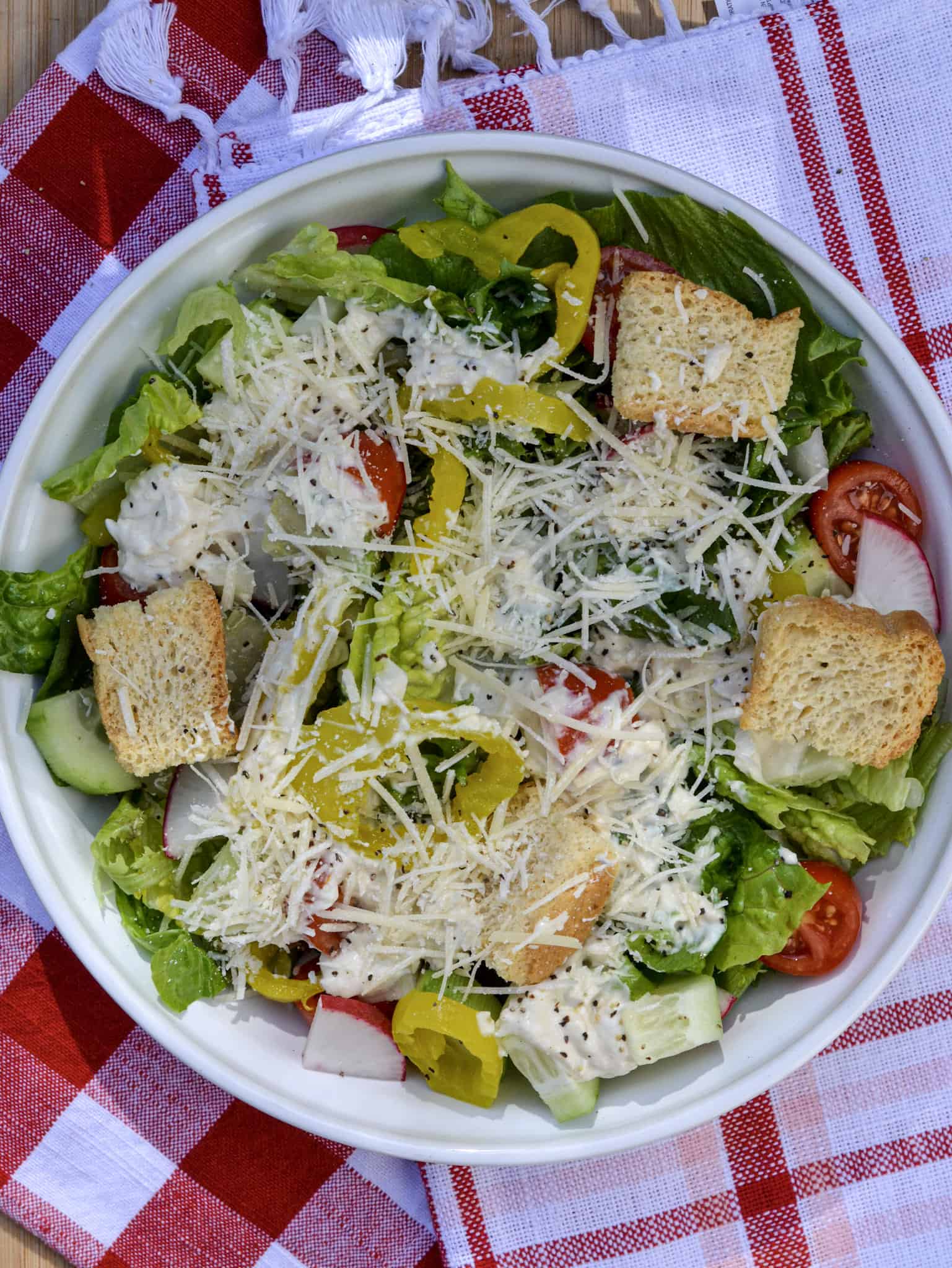 A simple, delicious & good for you Greek Yogurt Caesar Dressing. Loaded in flavor & protein with no seed oils – go ahead and enjoy a healthy salad dressing (or veggie dip)!