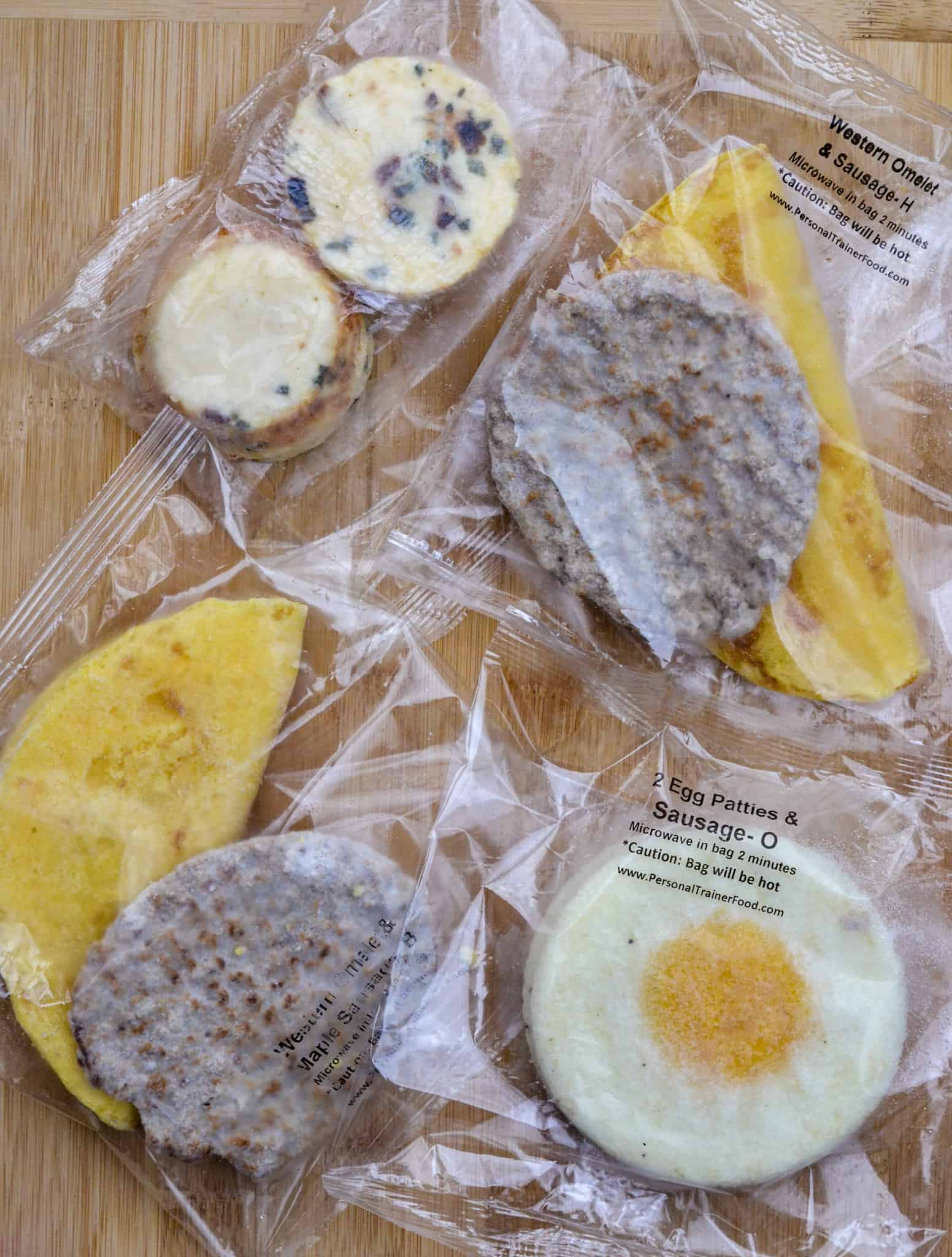 Breakfasts include Egg Bites, Cheddar Omelet & Chicken Cranberry Sausage, Western Omelet & Breakfast Sausage, Frittata & Maple Sausage. There are many other egg / meat combinations.