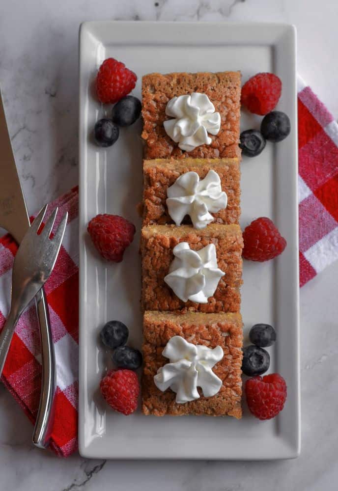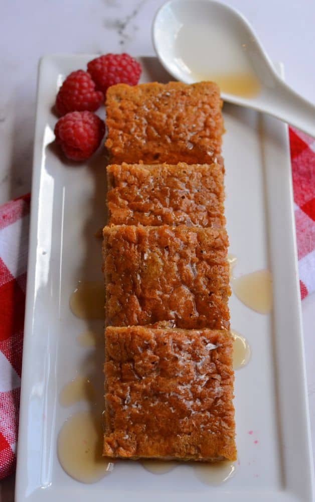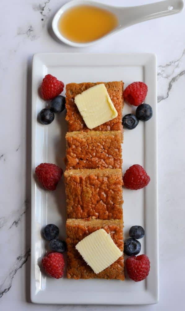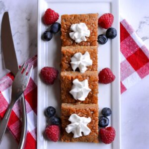 I enjoy this Keto French Toast Casserole served with berries, butter & whipped cream.