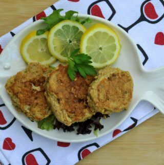 Keto Salmon Patties inspired by a Maryland Crab Cake. These are delicious – you will not miss the carbs! Made with canned salmon, almond flour, Old Bay Seasoning & celery. Quick to mix up & quick to make!