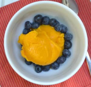 Mango Sorbet – a sweet, simple and decadent frozen treat made with just two ingredients. Healthy & vegan | www.craftycookingmama.comSeptember 17, 2017 by Amanda Leave a CommentMango Sorbet – a sweet, simple and decadent frozen treat made with just two ingredients. Healthy & vegan | www.craftycookingmama.com