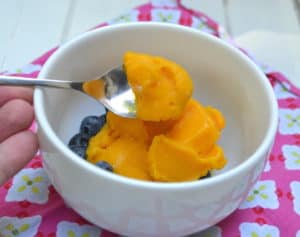 Mango Sorbet – a sweet, simple and decadent frozen treat made with just two ingredients. Healthy & vegan | www.craftycookingmama.comSeptember 17, 2017 by Amanda Leave a CommentMango Sorbet – a sweet, simple and decadent frozen treat made with just two ingredients. Healthy & vegan | www.craftycookingmama.com