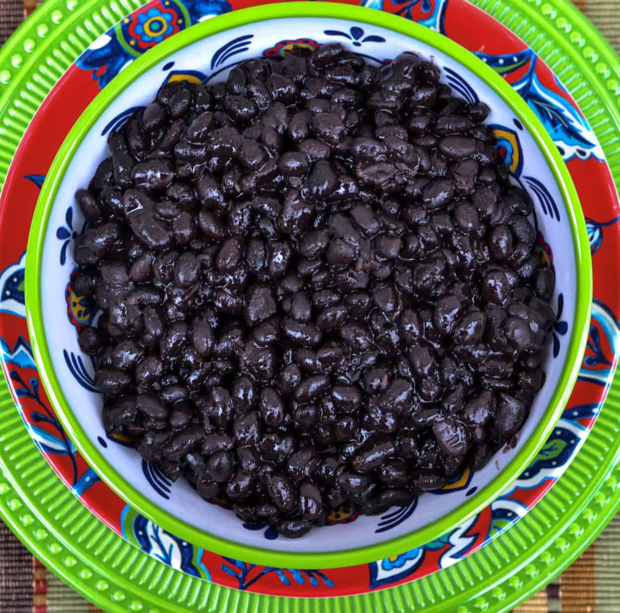 Start off with a one pound bag of dried black beans. I usually buy from the bulk section in a small local store, but often grab bags from big grocers as well.