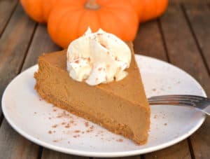 Molasses Pumpkin Cheesecake made with cream cheese & cottage cheese – a decadent, light & fluffy year round treat | www.craftycookingmama.com