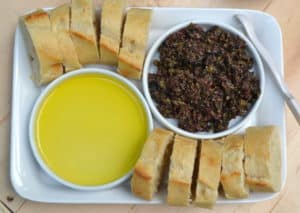 Try this simple & delicious Olive Tapenade made with black and kalmata olives, olive oil, capers, anchovies & garlic | www.craftycookingmama.com