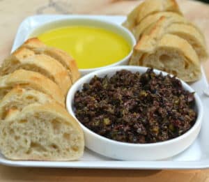 Try this simple & delicious Olive Tapenade made with black and kalmata olives, olive oil, capers, anchovies & garlic | www.craftycookingmama.com