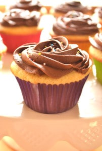 One Dozen Yellow Cupcakes with Chocolate Buttercream Frosting