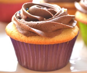 12 Yellow Vanilla Cupcakes with Chocolate Buttercream Frosting | Easy & Delicious | www.craftycookingmama.comFebruary 7, 2016 by Amanda Leave a CommentOne Dozen Yellow Vanilla Cupcakes with Chocolate Buttercream Frosting | Easy & Delicious | www.craftycookingmama.com