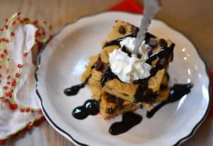 Soft, fluffy & tender – Oven Baked Peanut Butter Chocolate Chip Sheet Pan Pancakes | Simple to mix up, bake & clean up | www.craftycookingmama.com