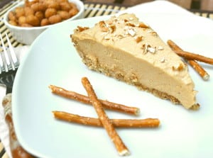 Sweet and salty peanut butter cheesecake pie in a pretzel crust | Rich & creamy with a crunch | So easy – pie filling is no bake | craftycookingmama.com