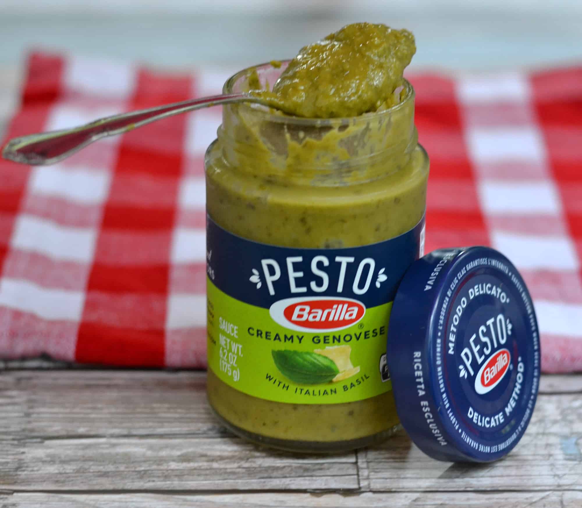 I’ve been sampling Barilla Creamy Genovese Pesto the past few weeks. I’m quite smitten with it. I must admit, the hardest part of it all has been restraining myself from eating it straight out of the jar!