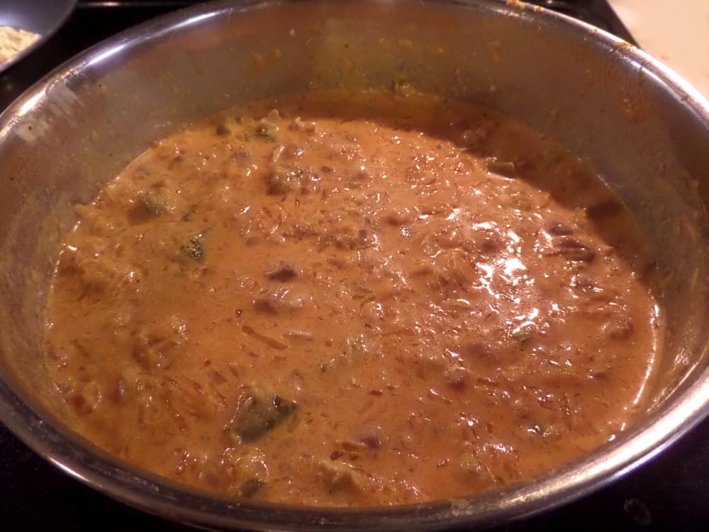 - Cover, simmer over low heat for 3-4 hours, stirring occasionally.
