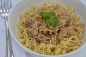 Pork and Sauerkraut with Spaetzle - PA Dutch favorite -craftycookingmama.com