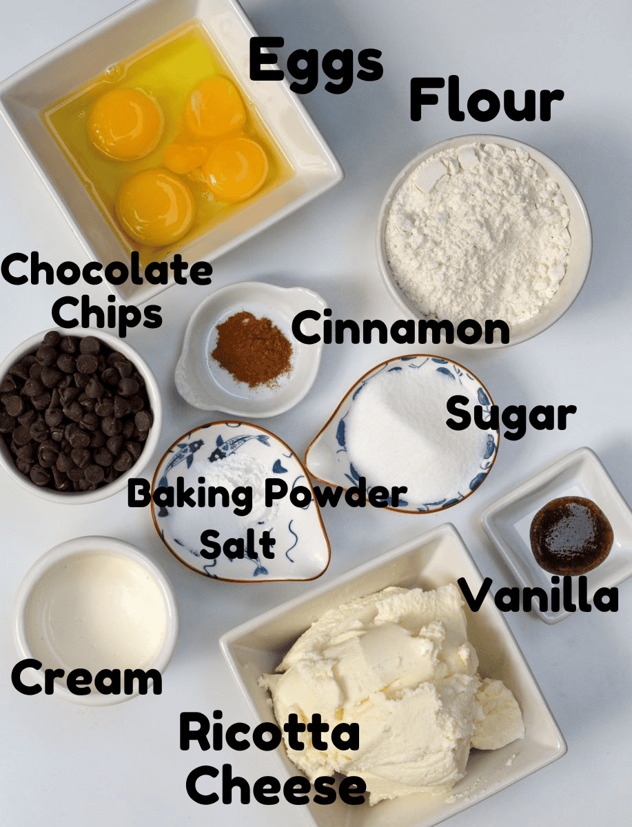 - Add egg mixture to ricotta mixture – stir until smooth. Fold in chocolate chips.