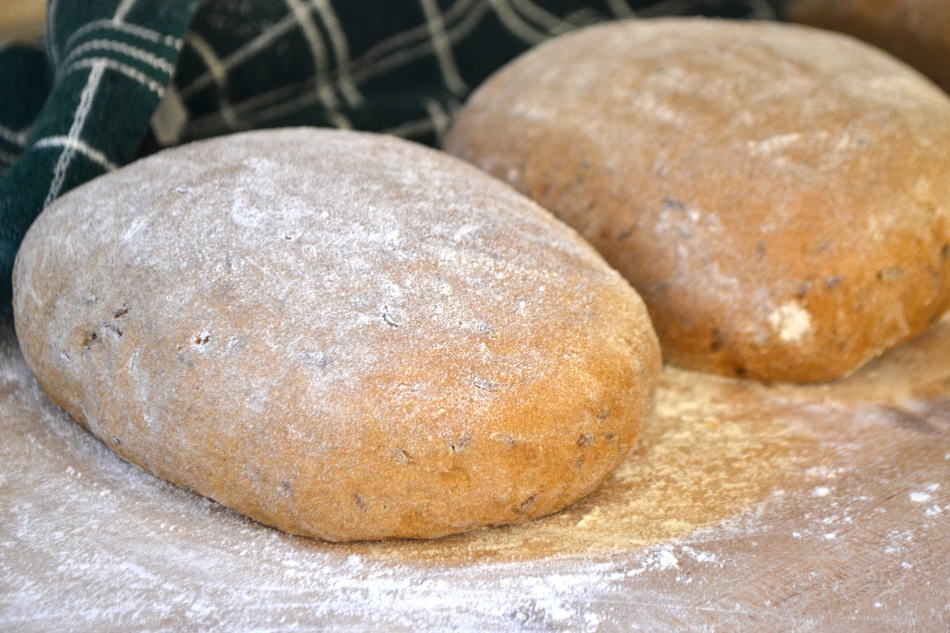 - Add milk, molasses, oil, salt, eggs, caraway seeds and flours.