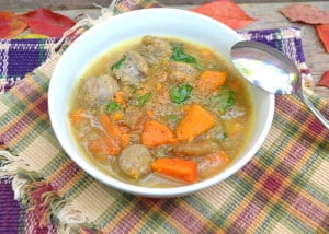 Sweet Potato, Sausage & Apple Schnitz Stew | A hearty & unique soup with all the flavors of Fall | Never heard of Apple Schnitz - Keep reading | craftycookingmama.com