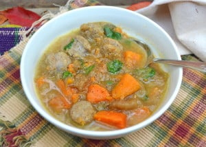 Sweet Potato, Sausage & Apple Schnitz Stew | A hearty & unique soup with all the flavors of Fall | Never heard of Apple Schnitz – Keep reading | craftycookingmama.com