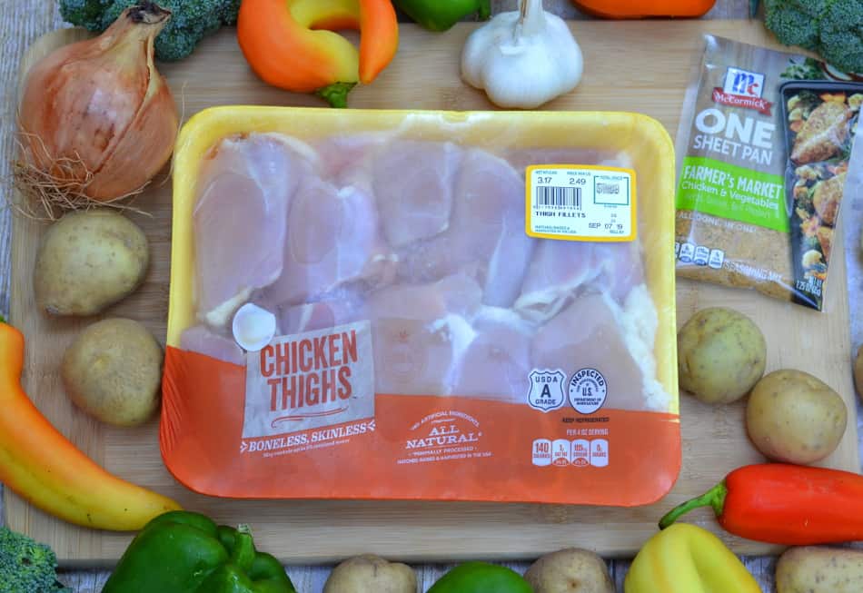 - 1 packet McCormick® ONE Farmer’s Market Chicken Sheet Pan Seasoning Mix