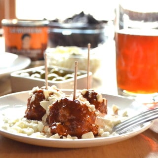 Looking for more “make ahead” recipes to add to your game day menu? Try Cheesy Refried Bean Dip & Buffalo Chicken Chili ! Want another tasty & unique meatball recipe? Check out this French Onion Meatballs recipe!