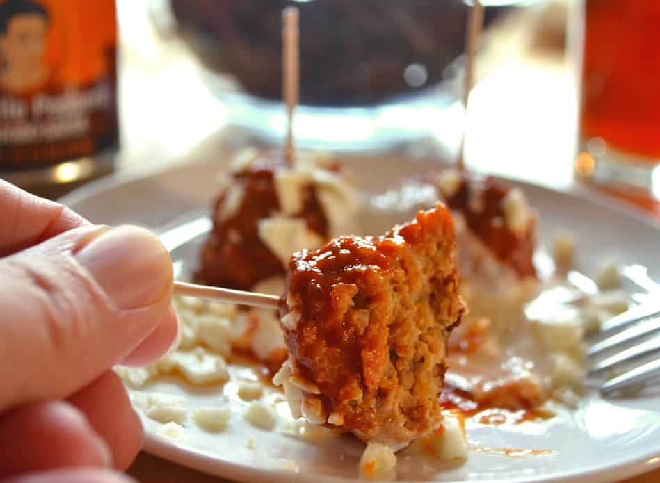 Spicy Chicken Meatballs with a homemade chipotle hot sauce. Loaded with smoky heat – these spicy chicken meatballs will make you forget all about wings!