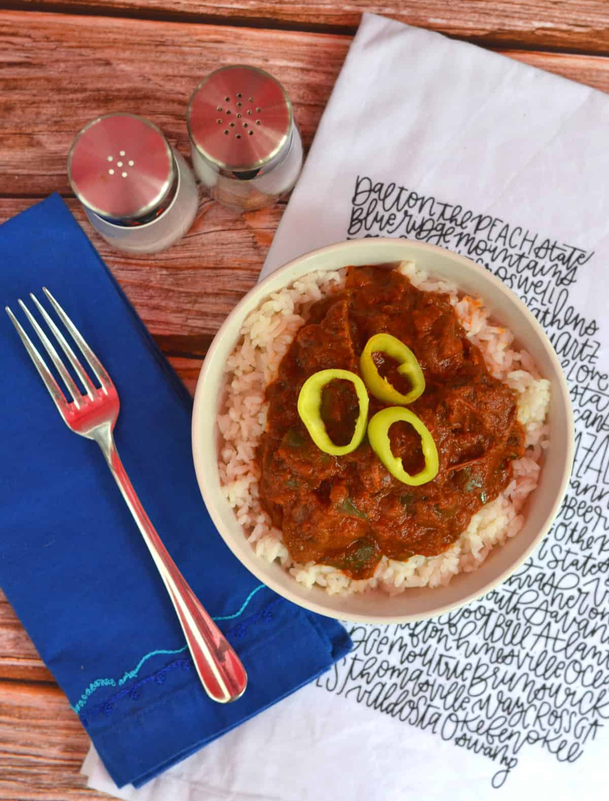 It’s simple. Consider it a base recipe, season to your preferences. Need more heat? Add more dried red pepper, hot peppers or hot sauce. Love onions and peppers? Add more. Want more umami? Add soy sauce or mushrooms. Hate soft peppers? Add your peppers later on in cooking or saute separately and mix in at the end. I make this often and season it differently depending on what I’m in the mood for. Brown the meat, saute your onions, deglaze, add the rest of your ingredients and simmer until meat is tender. I prefer my trusty dutch oven for this recipe.
