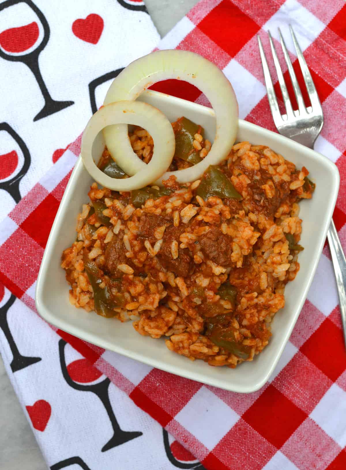 Tender pieces of venison simmered with green peppers, onions and tomatoes. Also known as Venison Pepper Steak. Simple, hearty & delicious.