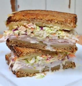 The Rachel Sandwich – grilled with swiss cheese and topped with turkey & coleslaw | www.craftycookingmama.comMay 16, 2018 by Amanda Leave a CommentThe Rachel Sandwich – grilled with swiss cheese and topped with turkey & coleslaw | www.craftycookingmama.com